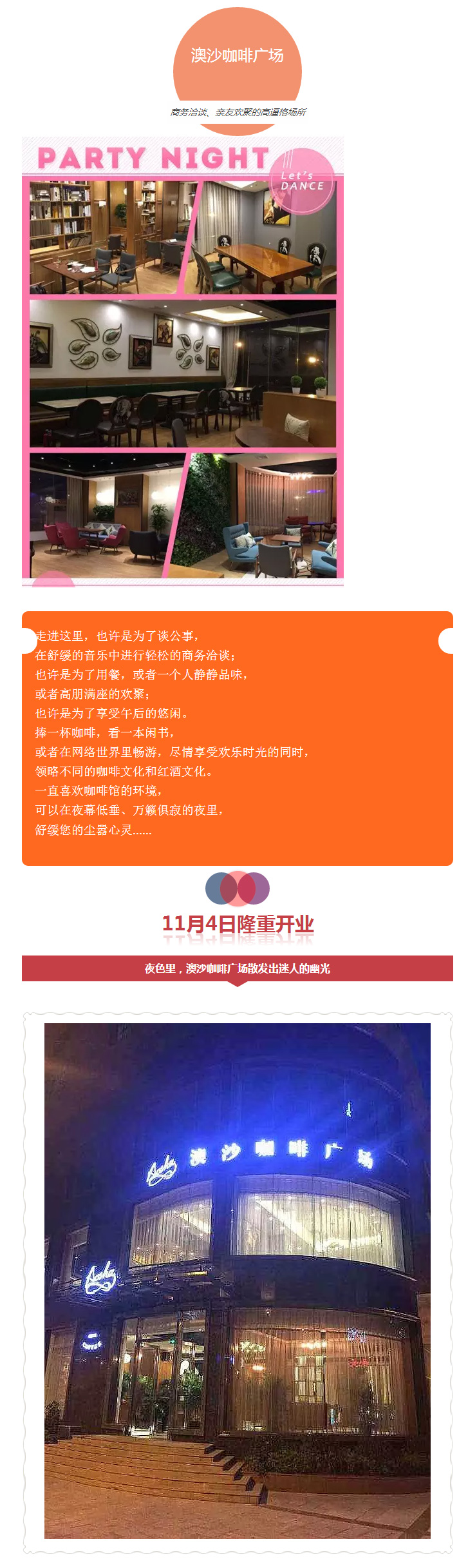 >> 澳沙咖啡廣場(chǎng)新裝開業(yè)啦,商務(wù)洽談、親友聚會(huì)隨你來!